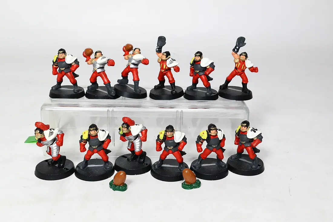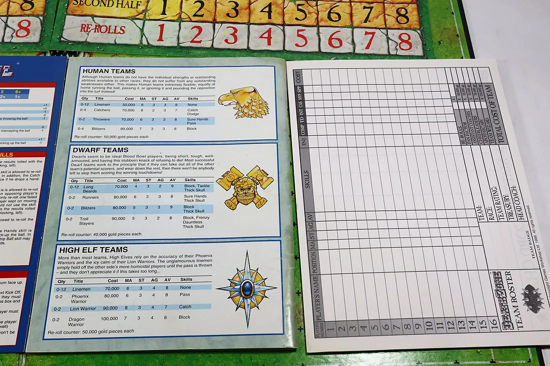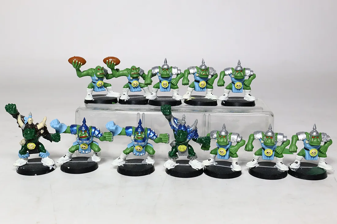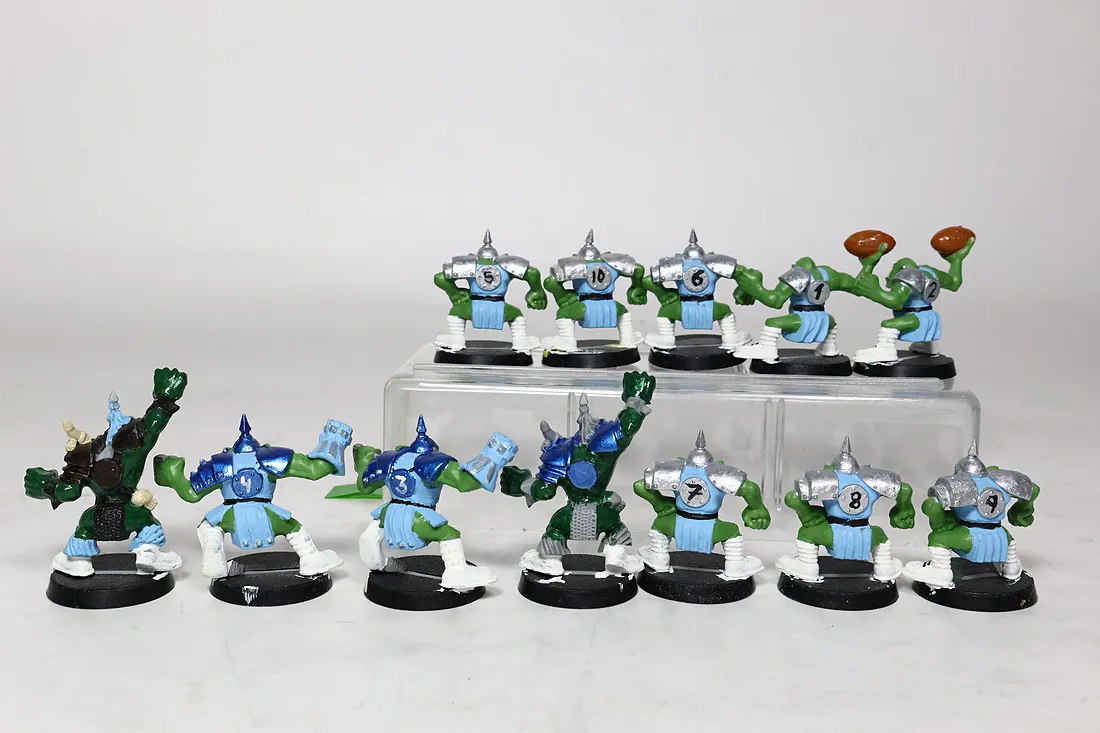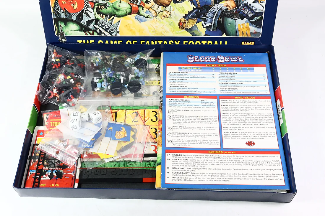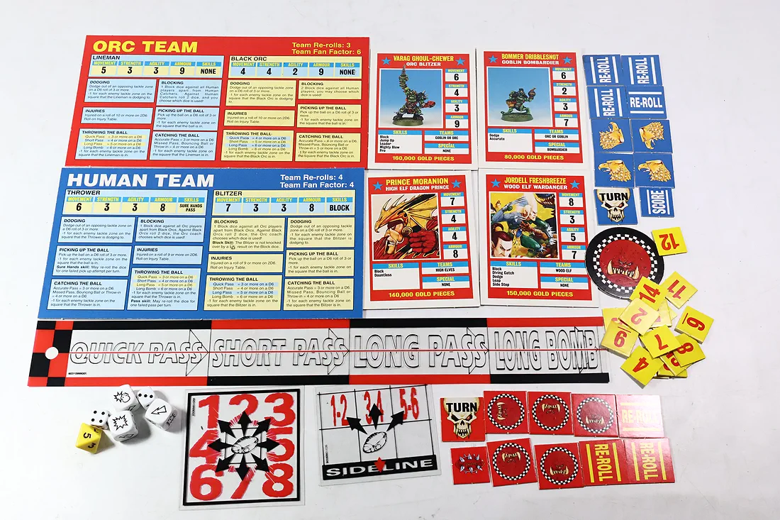 O ile dobrze naliczyłem brakuje ulotki how to paint, dwóch piłek od orków oraz karty star playerów są inne niż na opakowaniu. Polecam sprawdzić samemu czy czegoś nie brakuje. Żetony są kompletne. Przedmioty są oryginalne. Zdjęcia przedstawiają rzeczywisty stan oraz kompletność sprzedawanych produktów. You only buy what you see.